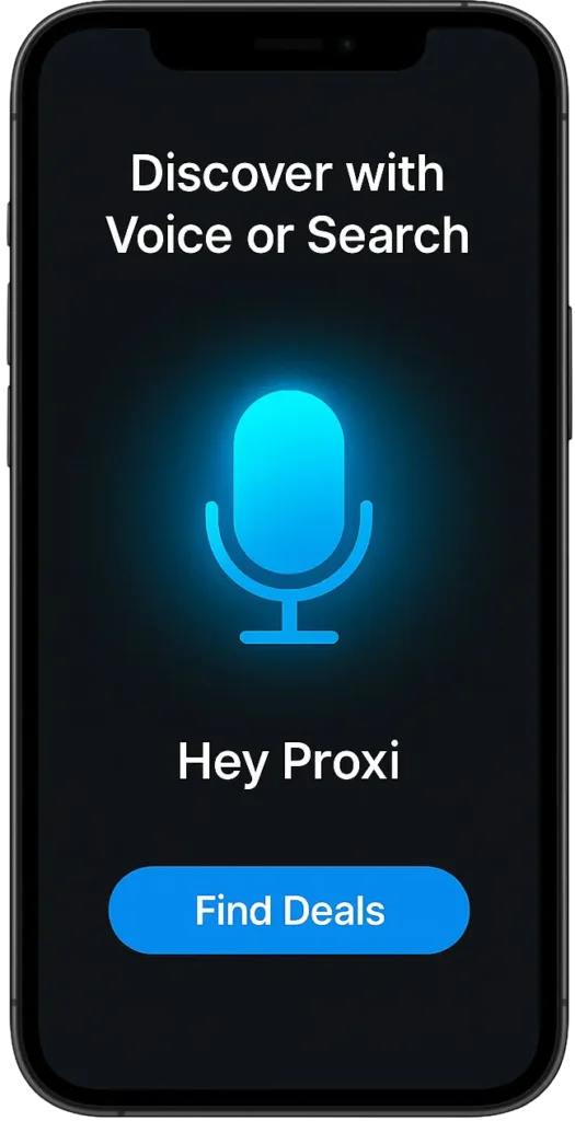 Simply say “Hey Proxi” or type what what y’re looking. Our Al understands and finds deals tailored just for your needs.